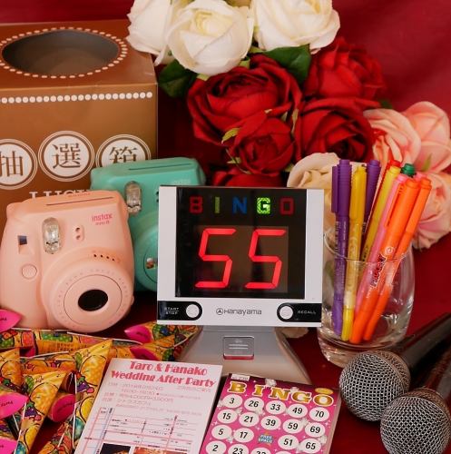 【充実の無料特典】新郎新婦無料/30名以上のご利用で1名様無料/お支払い金額は当日ご来店の人数分のみ/案内状作成/大型テレビ&プロジェクター【DVD再生など】/チェキ貸出/マイク貸出/筆記具貸出/ウェディングソング有り/景品事前預かり/荷物事前預かり/30分前入場OK/開始は30分押しまでOK/カラオケ割引券